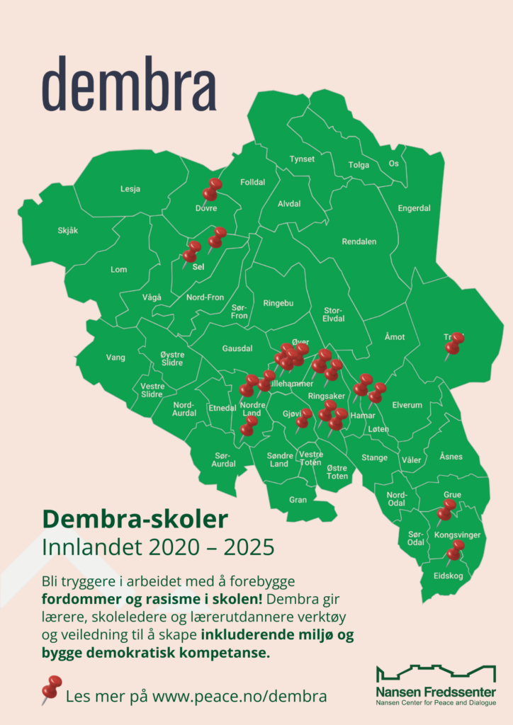 Nansen Fredssenter er ett av seks sentre som arbeider med Dembra rundt om i landet. Senteret har veiledere for skoler i Innlandet.