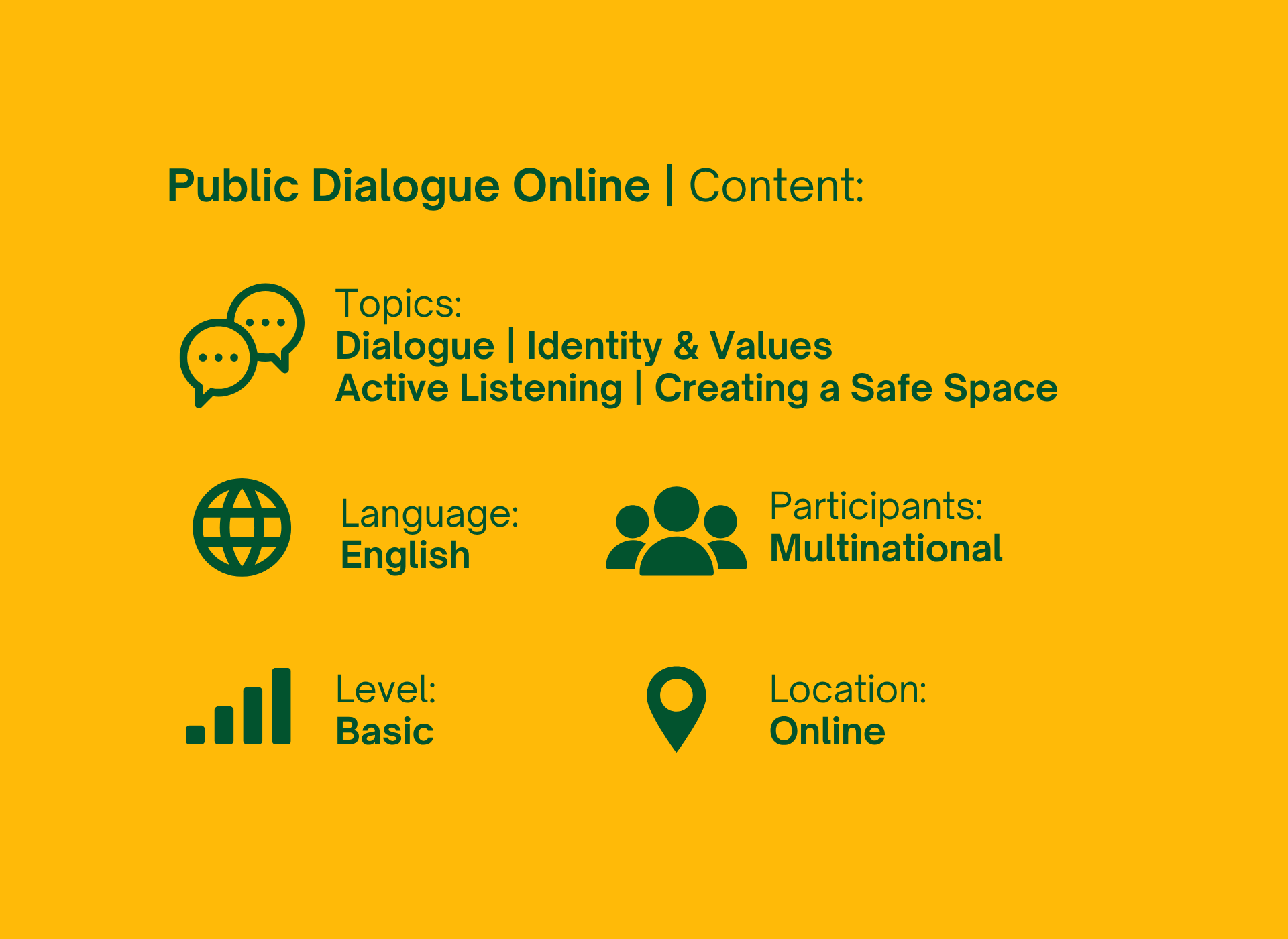 PARTICIPATING in this course will make you eligible to the advanced trainings in dialogue facilitation.