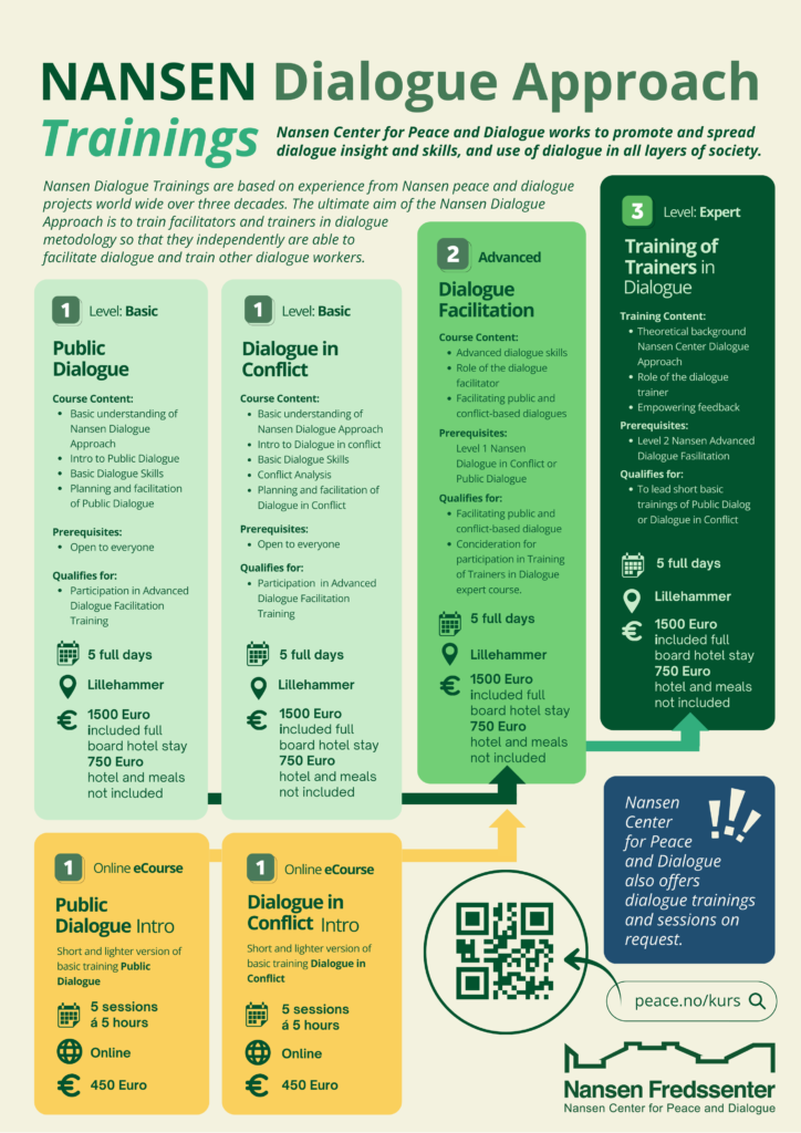 Nansen Center for Peace and Dialogue works to promote and spread dialogue insight and skills, and use of dialogue in all layers of society.